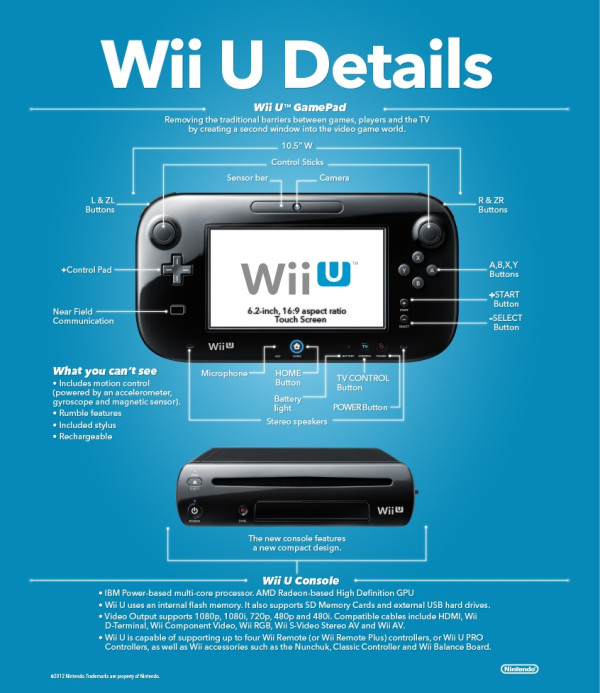 As you may know, the wii u was recently released. It's controller has a screen, so if an annoying family member wants to watch the TV while you're clearly playing on your new wii, you can put on the TV but still carry on playing using the screen on the remote. The wii comes in two colours: white, and black. The white is a simple 8gb pack, while the black premium is a 32gb pack. When you buy the wii u, it comes with a game called nintendo land (like the wii sports game that came with the first wii).